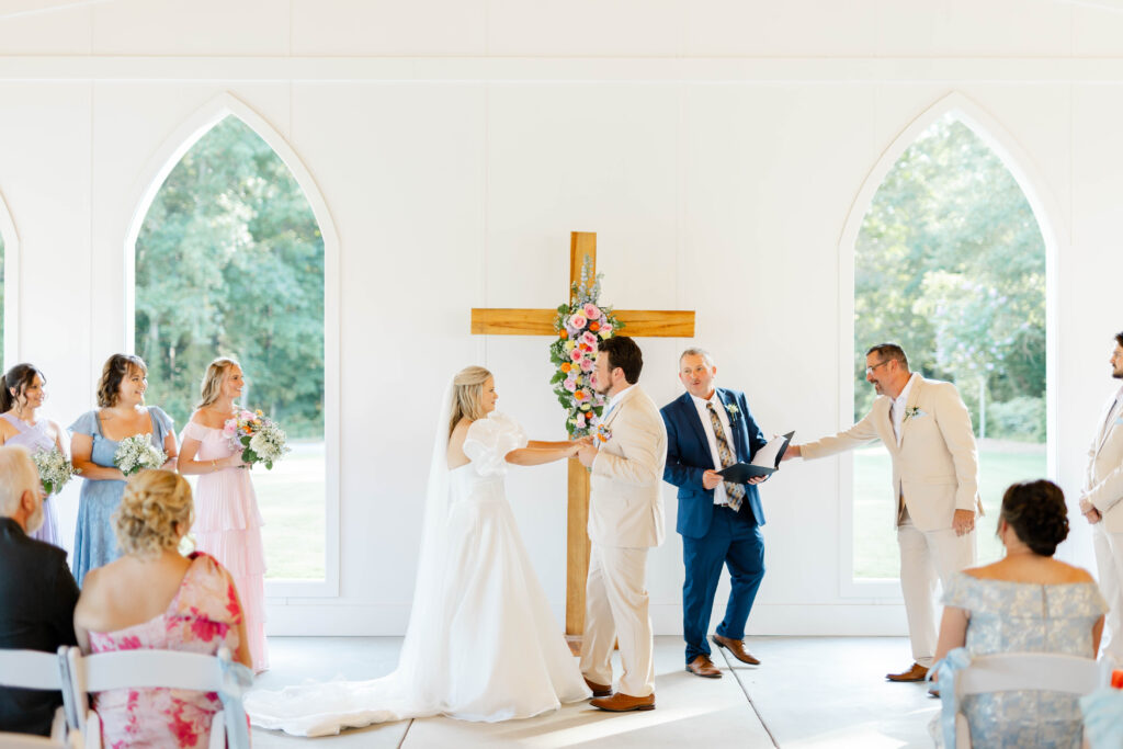 The Hartwood in Selma, NC was the perfect setting for their day! They were married under the open setting of the chapel. Surrounded by nature and the people who love them most, Jolie and Caleb promised forever, and I don’t think there was a dry eye by the end their vows. The way they looked at each other said it all—this wasn’t just a wedding day, it was the beginning of a lifetime.